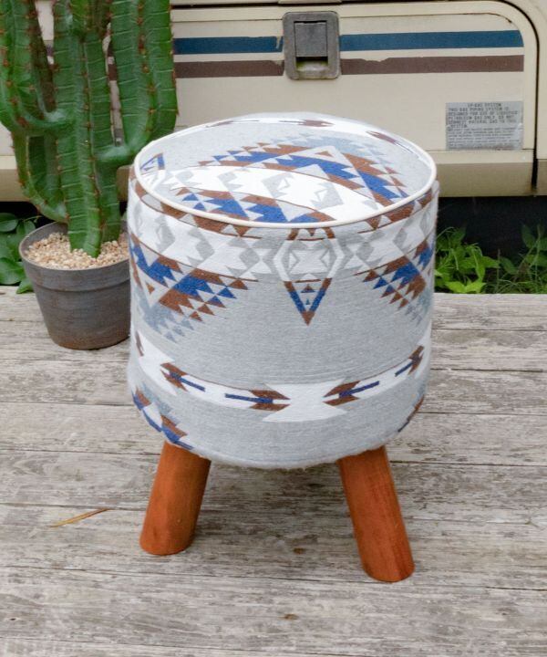 ドライなカラーリングのネイティブ柄デザインのコロンとした可愛いチェア。