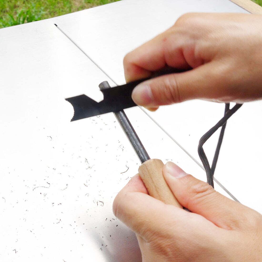 マグネシウム棒、ブレード(スケール・栓抜き 付き)、火吹き棒、ファットウッド、カラビナ付き収納袋
