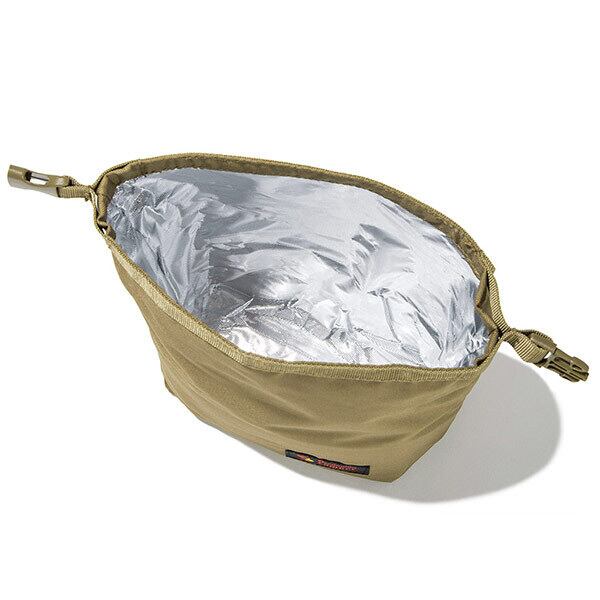 メスティン(約17×9.5×6.5cm)を保温できるウォームキーパーです。2個まで収納可能なサイズです。メスティンでの調理時に、蒸らす作業にとても便利です。内部はフォーム入りのアルミフィルム仕様で、保冷剤を入れるとソフトクーラー替わりにもなり、汚れも簡単に拭き取れます。350ml缶が4本入るサイズで、普段のお弁当やドリンクにもぴったりのバッグです。
