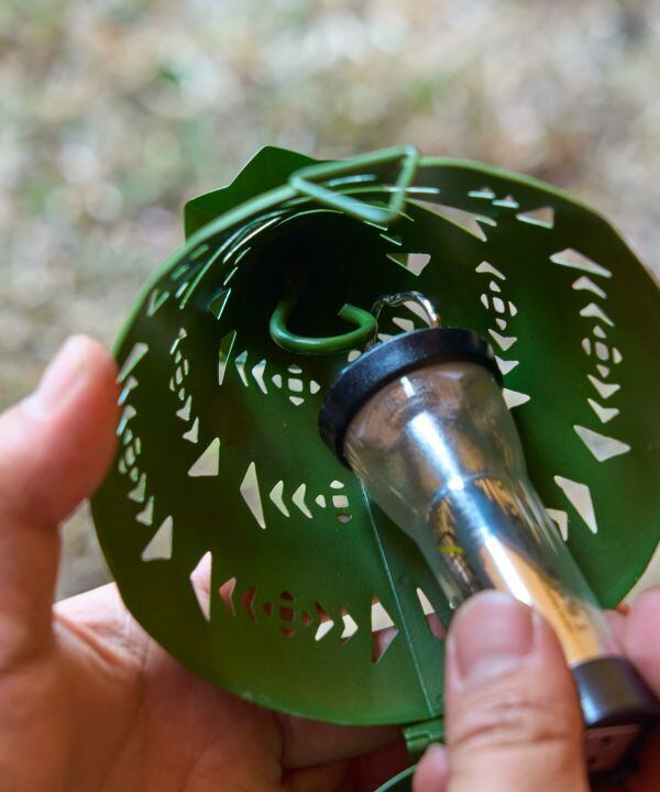 上部が開閉できるようになっており、内側にはランプを下げるフック付き。