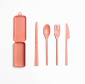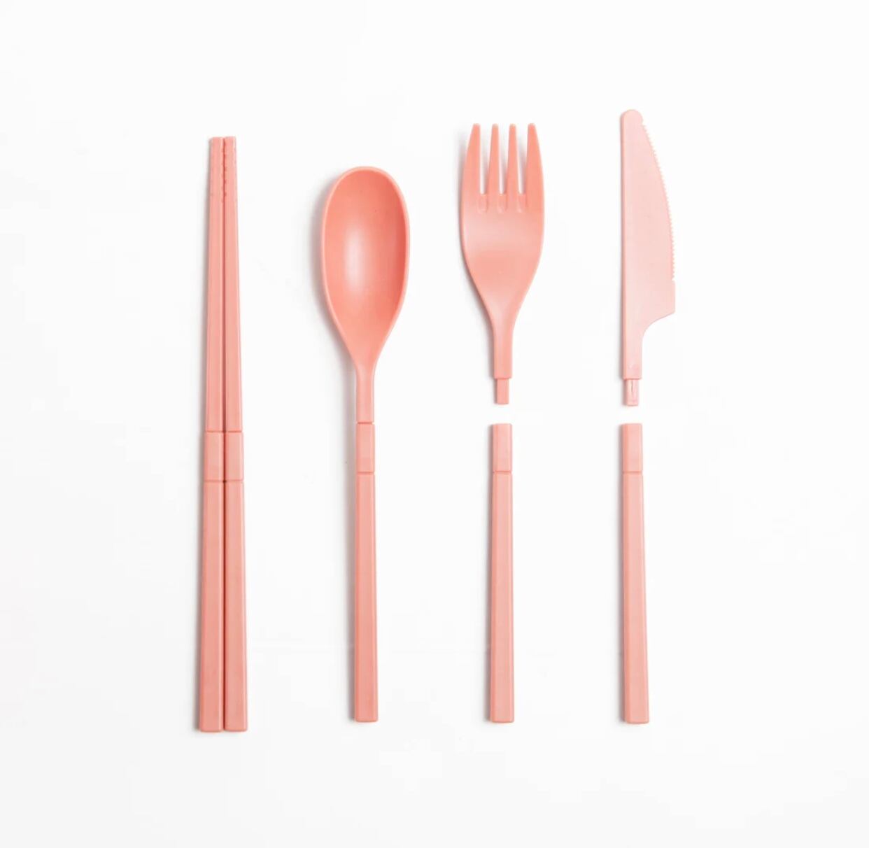 麦わら40%配合の素材なので軽くて、利便性を失わずに再利用可能でエコにも貢献。組み立て式箸・スプーン・フォーク・ナイフのポータブルカトラリーセットです。